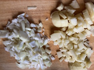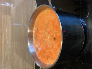 Simmer all the ingredients together for 40 minutes. Then whizz – can be a smooth or chunky as you wish.